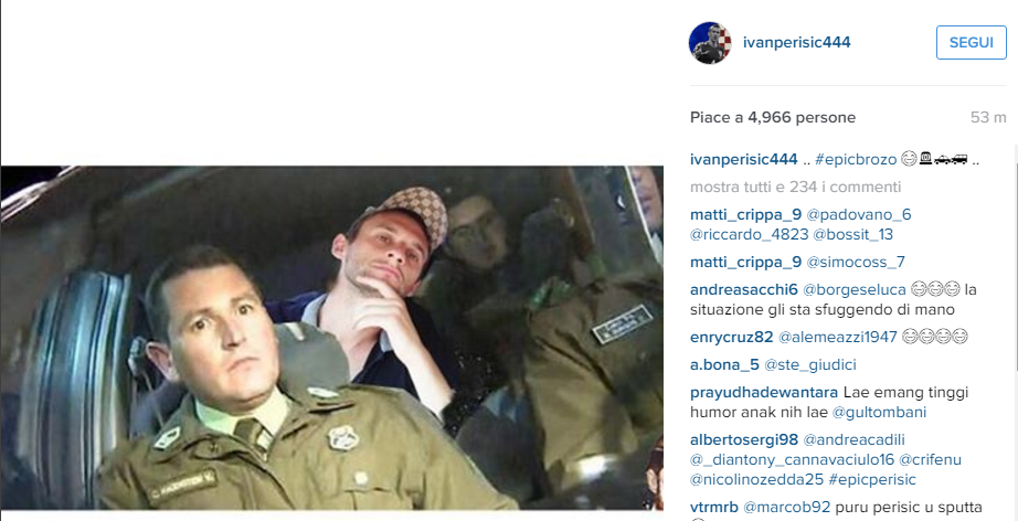 Il compagno di nazionale e di club di Brozovic, l'interista Perisic, ha pubblicato sul proprio profilo Instagram una foto che ritraeva il buon Marcelo in compagnia della polizia