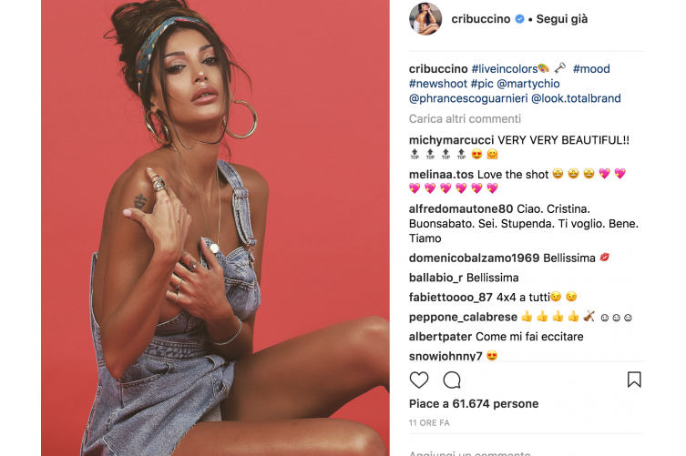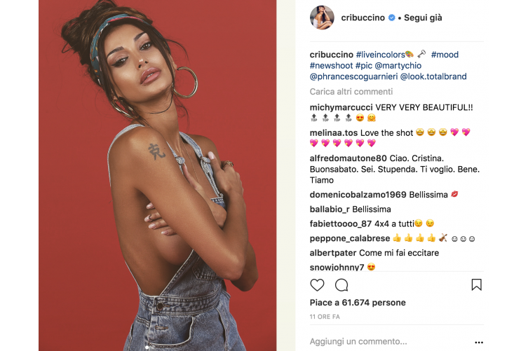 Cristina Buccino al ritorno dalle vacanze alla Maldive torna a lavoro più sexy che mai. La bella soubrette si diletta su un set fotografico in ‘topless’. Durante lo shooting la meravigliosa mora non indossa mai il reggiseno. Prima sotto la maglietta, poi addirittura con la salopette, Cristina Buccino rinuncia al reggiseno e si mostra super sexy all’obiettivo della fotocamera. Un gran bel vedere per i suoi follower che ricambiano con tanti like e commenti. Scorri la gallery sopra per vedere più foto.