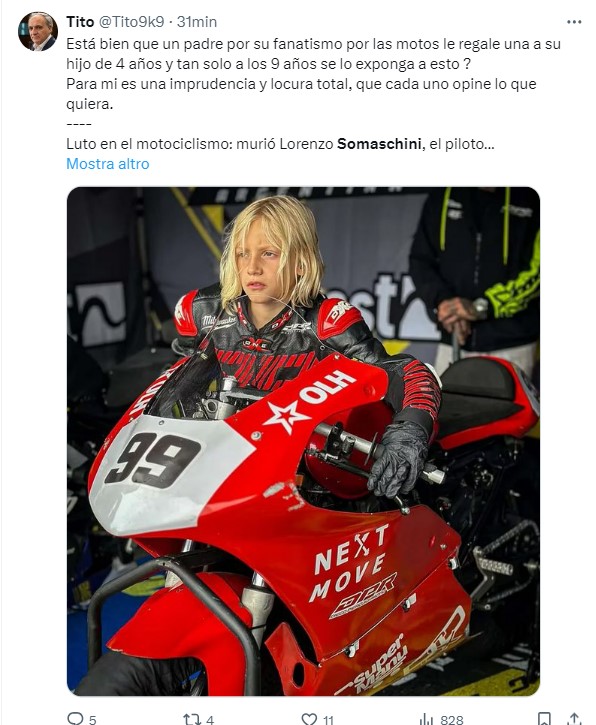 Somaschini ha battuto violentemente la testa sull’asfalto. Il trasporto d’urgenza in ospedale è stato inutile: il pilota è morto poco dopo. L’argentino correva dall’età di 4 anni, quando i suoi genitori gli avevano regalato una minimoto.