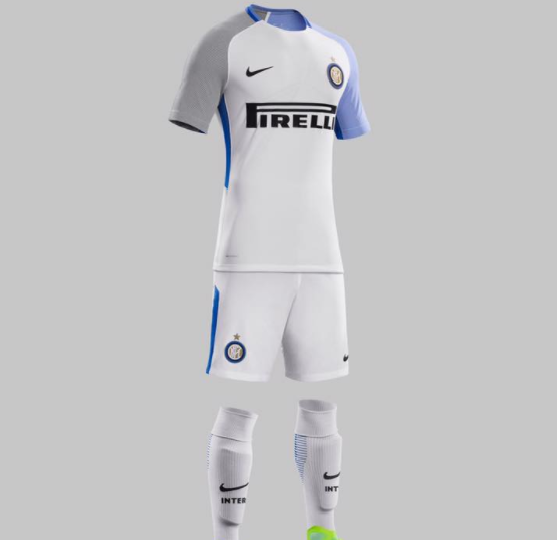 “La nuova divisa Away dell’Inter mantiene la classica palette di colori della seconda maglia – bianco, azzurro e nero – ma la declina in un modo piu? fresco e nuovo seguendo i dettami dello stile e dell’eleganza milanese e sfruttando la tecnologia Aeroswift.