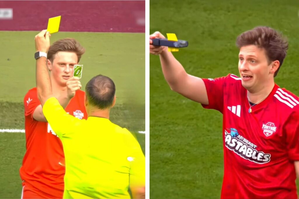 Se il nome di Max Fosh vi evoca un vago senso di déjà-vu, non è un caso: il creator britannico ha trasformato l’ammonizione dell’arbitro in una vera e propria forma d’arte virale, costruendo una saga che sfida ogni logica sportiva. Tutto ebbe inizio qualche anno fa quando, davanti a un incredulo Mark Clattenburg, Fosh reagì al cartellino giallo sfoderando dalla tasca una carta “Uno Reverse”, ribaltando l’ammonizione sul direttore di gara e creando uno dei meme più iconici della storia recente del web. Ma quello era solo l’inizio di un’escalation di follia: l’anno scorso Max aveva deciso di alzare la posta presentandosi in campo con un mini-tritacarte portatile, infilandoci dentro il cartellino appena ricevuto sotto gli occhi di uno stadio in delirio.