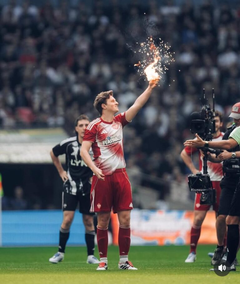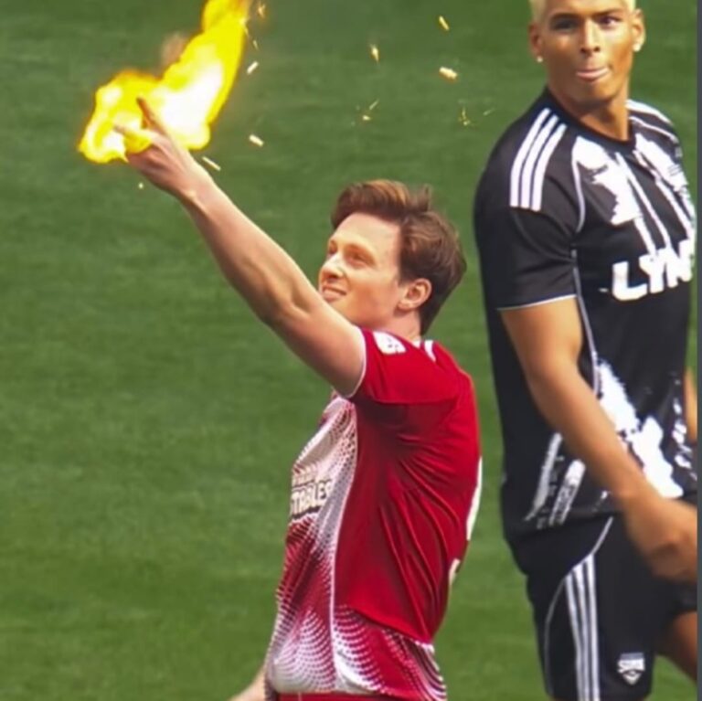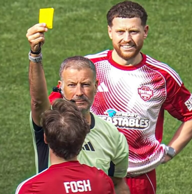 Max Fosh non è un calciatore professionista, è un genio della provocazione e un performer. Durante il match, dopo un fallo tattico, l’arbitro Clattenburg (che si presta volentieri allo show) lo ha puntato per ammonirlo. In quel momento, Fosh ha messo in scena un trucco di magia degno di Las Vegas: ha preso il cartellino giallo, lo ha sollevato verso il pubblico e, in un istante, è diventato una fiammata accecante svanendo nel nulla. Clattenburg è rimasto a mani vuote, con una faccia tra l’attonito e il divertito, mentre il video faceva già il giro del mondo