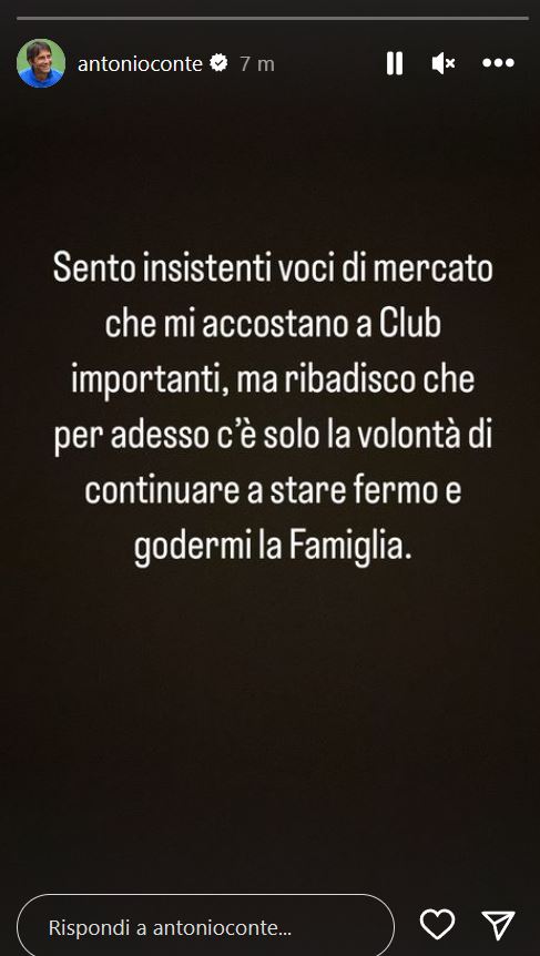 Il Napoli ha iniziato a valutare alcuni nomi e l’unico in grado di stuzzicare la fantasia del presidente De Laurentiis è stato quello di Antonio Conte. L’ex Ct della Nazionale italiana ha chiuso la porta: “sento insistenti voci di mercato che mi accostano a club importanti, ma ribadisco che per adesso c’è solo la volontà di continuare a stare fermo e godermi la famiglia”, il messaggio in una Storia Instagram.