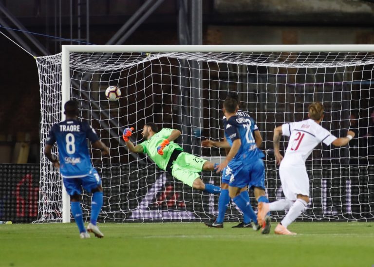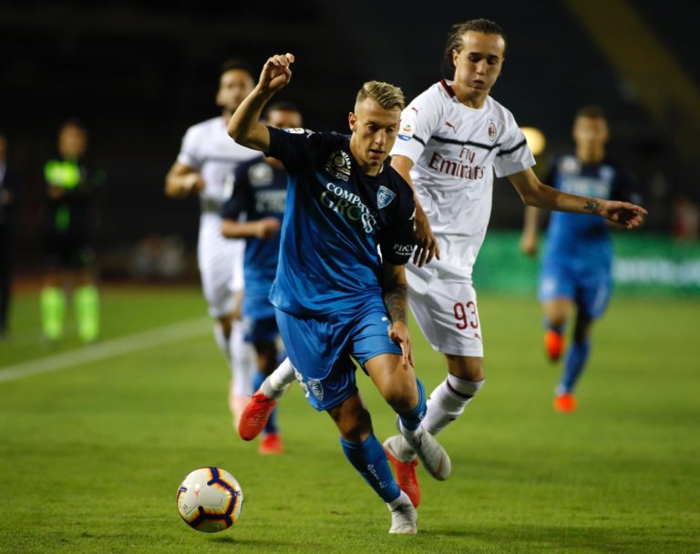 Empoli (4-3-1-2): Terracciano 7.5; Di Lorenzo 6.5, Silvestre 6, Maietta 6.5, Veseli 6; Bennacer 6, Capezzi 5.5 (dal 75′ Rasmussen 5.5), Krunic 5.5; Traore 5.5 (dall’81’ Brighi); Caputo 6.5, La Gumina 5 (dal 65′ Mchedlidze 5.5).