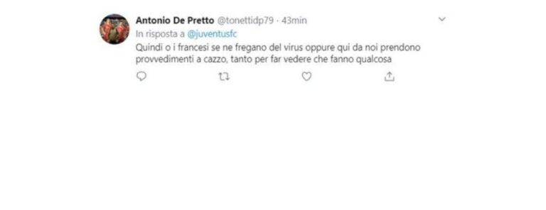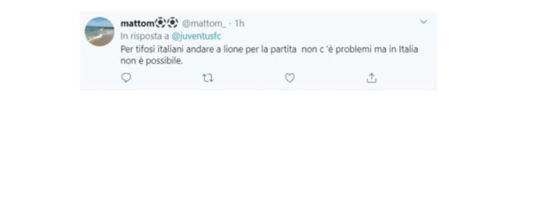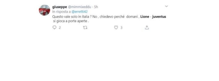 Il Coronavirus sta portando pesanti conseguenze al mondo del calcio, anche per le squadre italiane. E non solo a livello Nazionale, ma anche sul fronte delle competizioni europee. In particolar modo la sfida di Europa League tra Inter e Ludogorets si giocherà a porte chiuse, i nerazzurri possono contare sul risultato dell’andata (0-2) che lascia relativamente tranquilli. Ma sarà comunque un match insolito senza spettatori sugli spalti. Per il momento non sono previste restrizioni per la gara Lione-Juventus, viene permesso ai tifosi bianconeri di partire per la Francia. Ai supporter della Juventus invece è stato impedito di sostenere la squadra nello scontro scudetto contro l’Inter, la sfida infatti si disputerà a porte chiuse. Secondo alcuni si tratta di un controsenso. Vietare l’ingresso allo stadio di Torino, ma permettere la partenza delle stesse persone per la Francia. “Ci permettono di invadere la Francia, ma a casa nostra non possiamo andare allo stadio”, fa notare un tifoso sui social. Per il momento è stata presa questa decisione, ma la situazione è in continua evoluzione e non sono da escludere colpi di scena. In alto la FOTOGALLERY con tutti i messaggi da Twitter.
