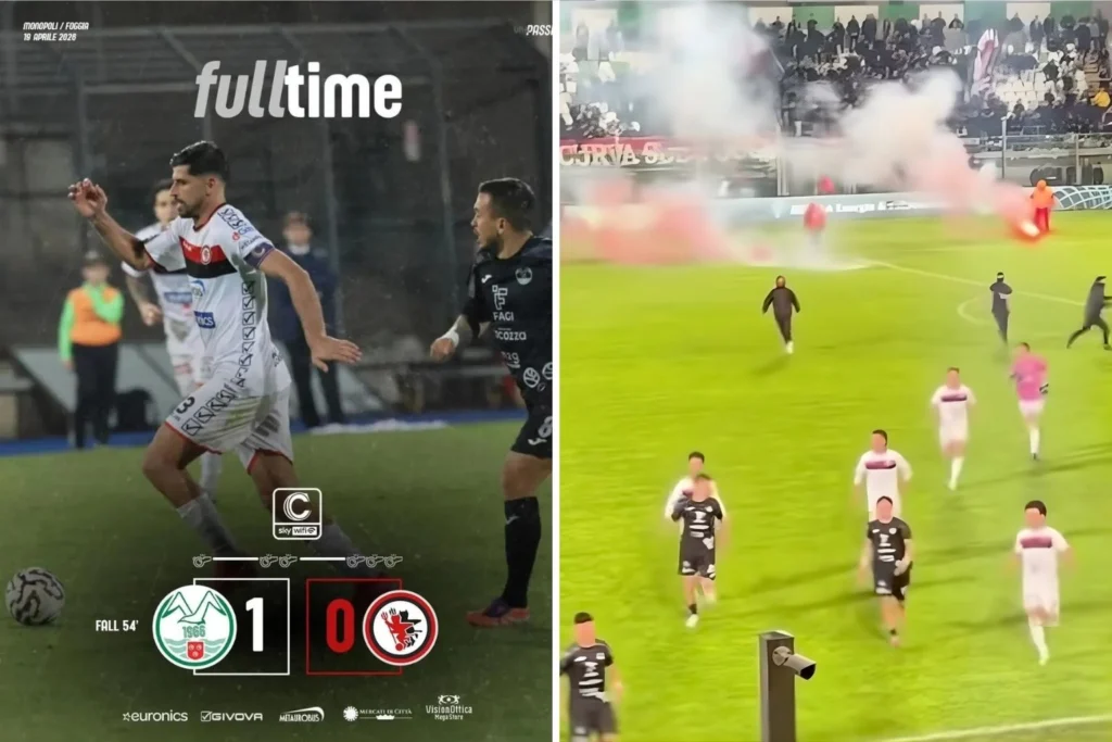 MONOPOLI – Quello che si è consumato sul prato del “Veneziani” durante l’ultimo turno di Serie C, non è più calcio: va oltre la crisi sportiva e sfocia nella cronaca nera. Il Foggia, gloriosa nobile del calcio del Sud, non sta solo rischiando la retrocessione in Serie D: sta perdendo la sua dignità in un clima di violenza che ha trasformato una partita di pallone in una guerriglia urbana.