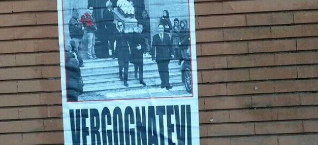 Una bara con fiori bianchi portata a spalle da ‘volti noti’ del calcio a Torre Annunziata (Napoli). E una scritta: ‘Vergognatevi’. E’ il messaggio lasciato nella notte attraverso una serie di manifesti da ignoti sostenitori del Savoia, squadra di Torre Annunziata (Napoli) che milita nel Girone C del campionato di Lega Pro, alle prese con una crisi economica e societaria che inevitabilmente si riflette sull’andamento della squadra, penultima in classifica. Il manifesto è apparso in diversi punti della città: con un fotomontaggio si possono notare a portare la ‘bara del Savoia’ dirigenti attuali e precedenti del club olpontino. Tutto alla vigilia della sfida interna in programma allo stadio Giraud, dove il Savoia ospita la Lupa Roma (fischio d’inizio 17,30). Nonostante lo sciopero degli allenamenti dei calciatori dei giorni scorsi, la partita – per scelta degli stessi tesserati – si gioca regolarmente.