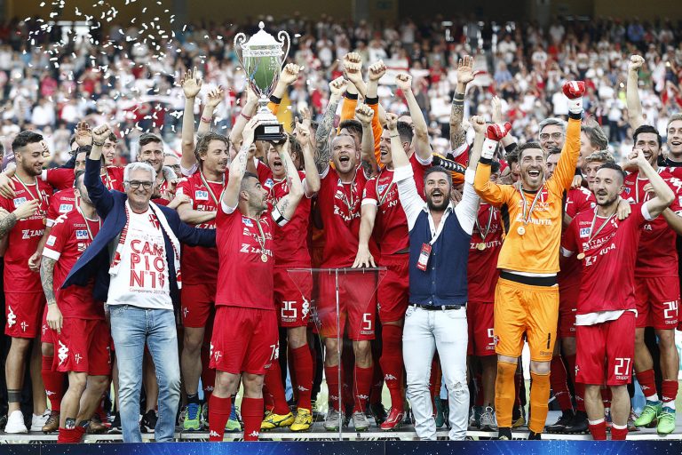 Si è concluso il campionato di Serie C, ecco i verdetti e gli accoppiamenti playoff. Vince ancora il Padova, successo contro il Gubbio, tre punti dell’Albinoleffe anche contro il Vicenza. Gol e spettacolo tra Teramo e Cremonese, finisce 3-3. Il Padova è già promosso in Serie B, ai playoff approdano invece: SudTirol, Sambenedettese, Reggiana, Albinoleffe, Feralpisalò,Renate, Bassano, Pordenone e Mestre. Sfida playout tra Teramo e Vicenza. Il Padova alza la Coppa, in alto la fotogallery.